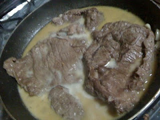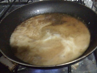 Polvilha-se com a farinha, deixa-se esta cozer um pouco e rega-se com um pouco de leite e o caldo obtido da cozedura dos camarões, tendo o cuidado de o coar antes de utilizar.